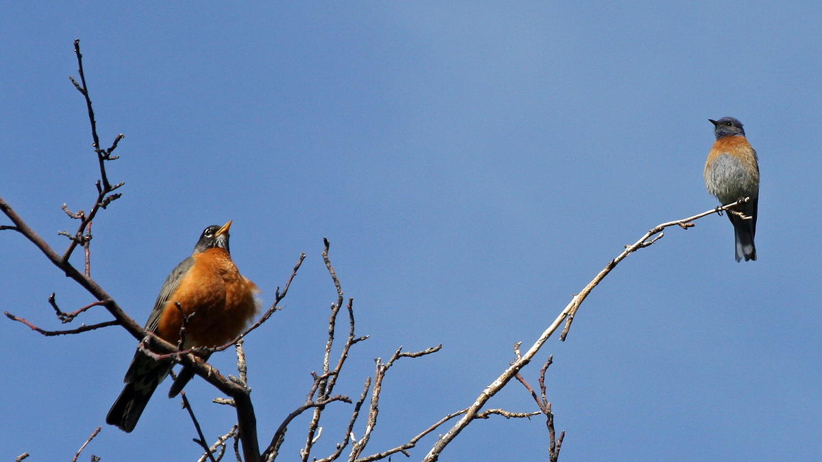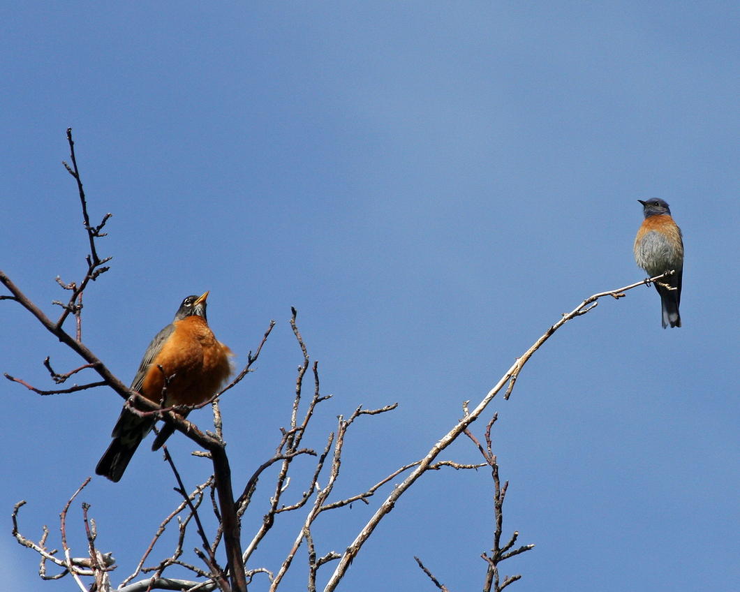 American Robin and Western Bluebird. Photo: John Hartgerink